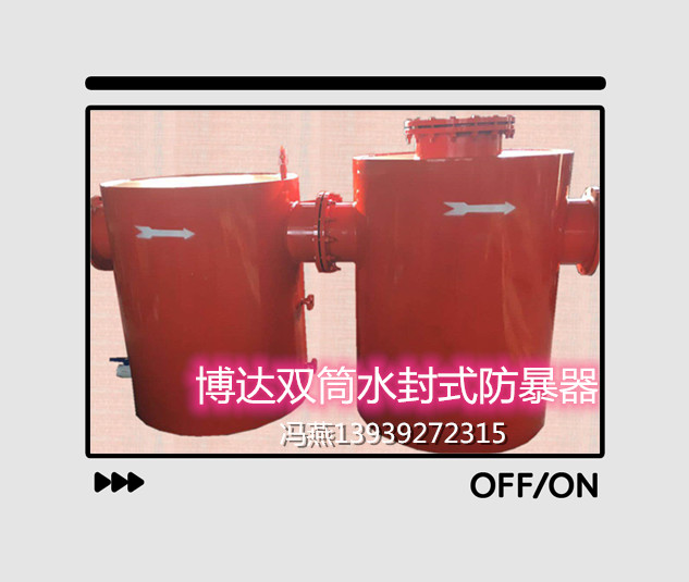 雙筒水封式防爆器采用雙罐結構,其水封水位觀(guān)測直觀(guān)、能夠快速有效排污、連接方便、安裝防護性好、耗水量小且水封水位恒定、工作阻力穩定、泄壓部件承壓強度大等優(yōu)點(diǎn),并形成大、中小系列產(chǎn)品、滿(mǎn)足不同客戶(hù)的要求。