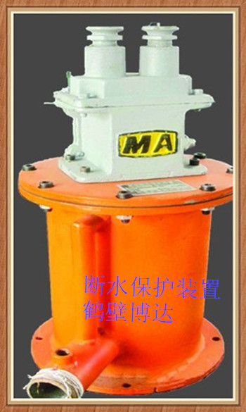 斷水保護裝置用于抽放管路等管道上實(shí)行缺水自動(dòng)斷電的保護裝置。本斷水保護裝置主要用于煤礦瓦斯抽放泵的斷水保護,由礦用隔爆開(kāi)關(guān)和水箱組成。當瓦斯抽放泵的供水正常時(shí)水箱中的浮子浮起,斷水保護裝置,礦用微動(dòng)隔爆開(kāi)關(guān)的隔爆微動(dòng)開(kāi)關(guān)閉合,瓦斯抽放泵工作;當循環(huán)供水不正常時(shí)水箱中的浮子落下,隔爆微動(dòng)開(kāi)關(guān)打開(kāi),瓦斯抽放泵停止工作。由此,實(shí)現斷水保護。